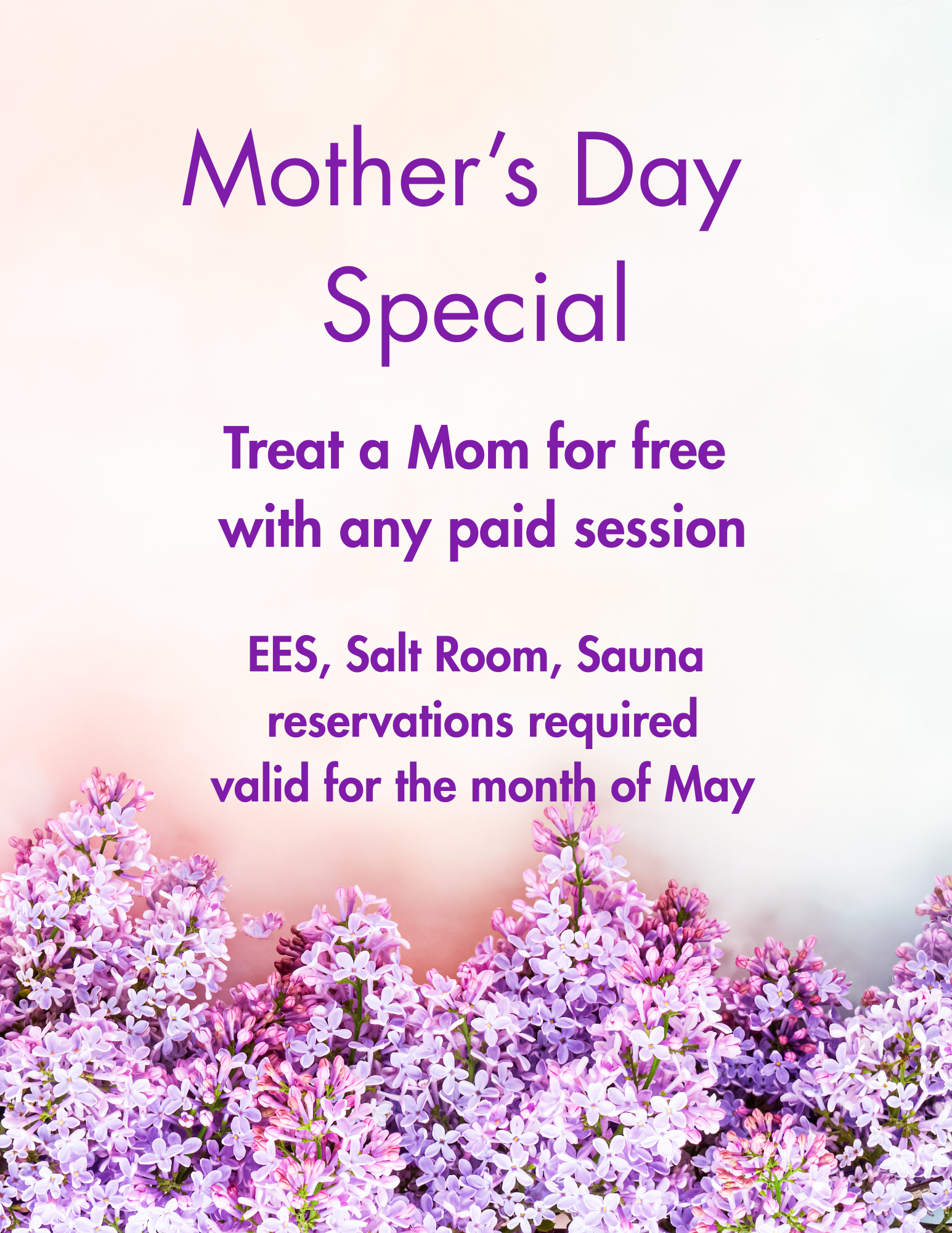 Bring a mom with you and her session is FREE with your paid session.